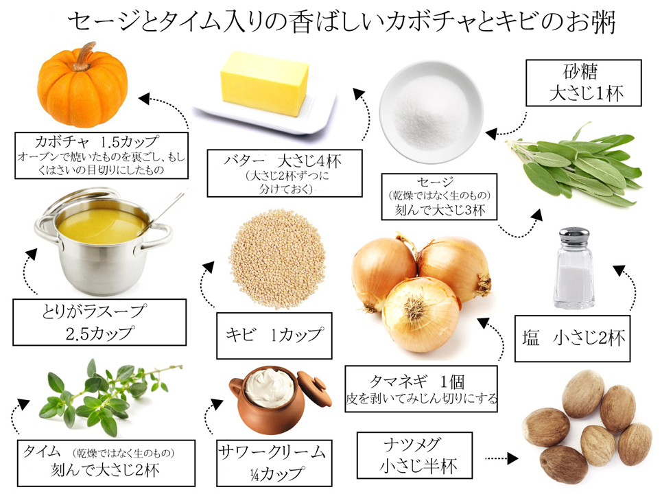 セージとタイム入りの香ばしいカボチャとキビのお粥