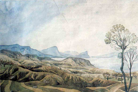 詩人ウォローシンは美術の、いわゆるキンメリア派の創始者だった。彼が描いた幻想的なキンメリアは、彼が愛した黒海のクリミア半島だ。主に水彩による風景画を描き、それに詩を添えた。「そなたの湿りある光とくすんだ影は、岩々にトルコ石の風情を与う」のような詩だ。マクシミリアン・ウォローシンはパリで美術を学んだ。今、ウォローシンの作品は、トレチャコフ美術館やプーシキン美術館など、多くの美術館のコレクションになっている。