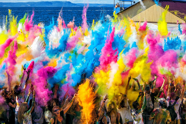 数千人の若者が8月最後の31日、ウラジオストク市にあるトカレフスキー砂州のビーチに集結。多彩な絵の具を塗りあったり、かけあったりする、世界的に有名なホーリー祭が初めてここで行われた。