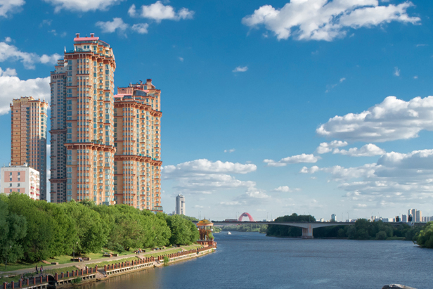 「クトゥーゾフスカヤ・リヴィエラ」は、モスクワでも環境の良い地区にある集合住宅である。高さは100メートルある。