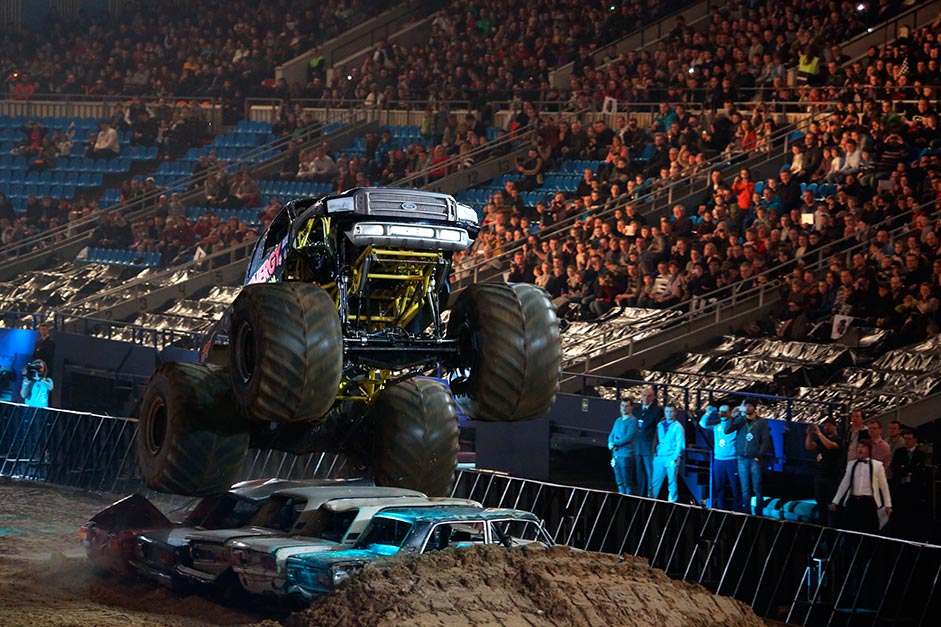3月23日、モスクワ。オリンピックスタジアムで、オートショー「Energy Truck MONSTER MANIA」を開催。 =アントン・ノヴォデレシキン/タス通信撮影
